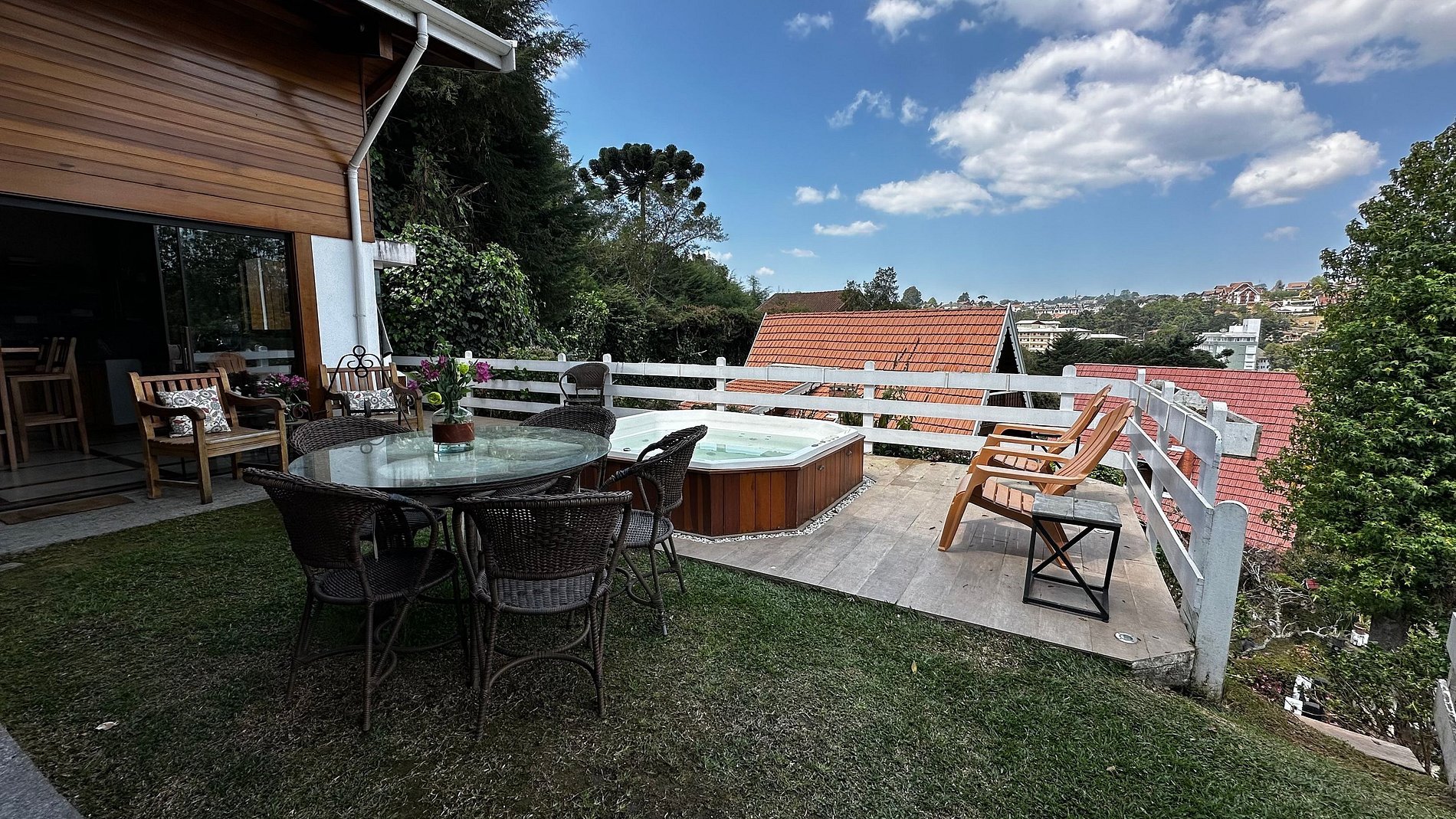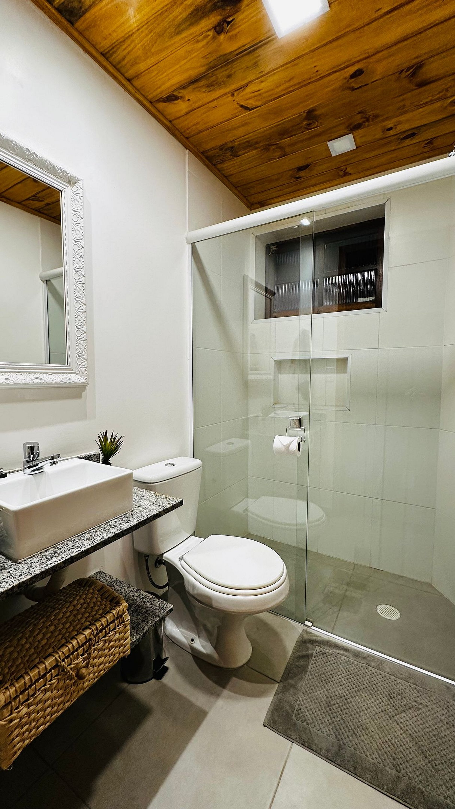 O chalé conta com 4 suítes, sendo uma delas um verdadeiro refúgio com sala privativa, ideal para quem busca ainda mais exclusividade e conforto.