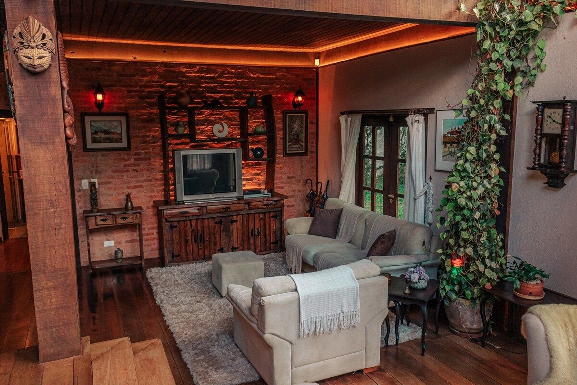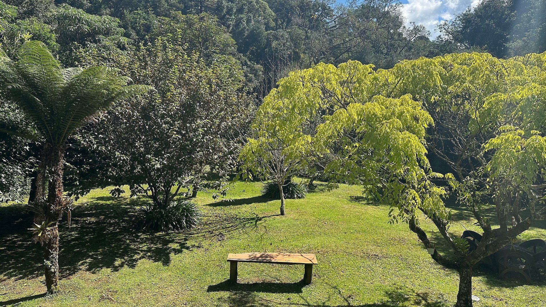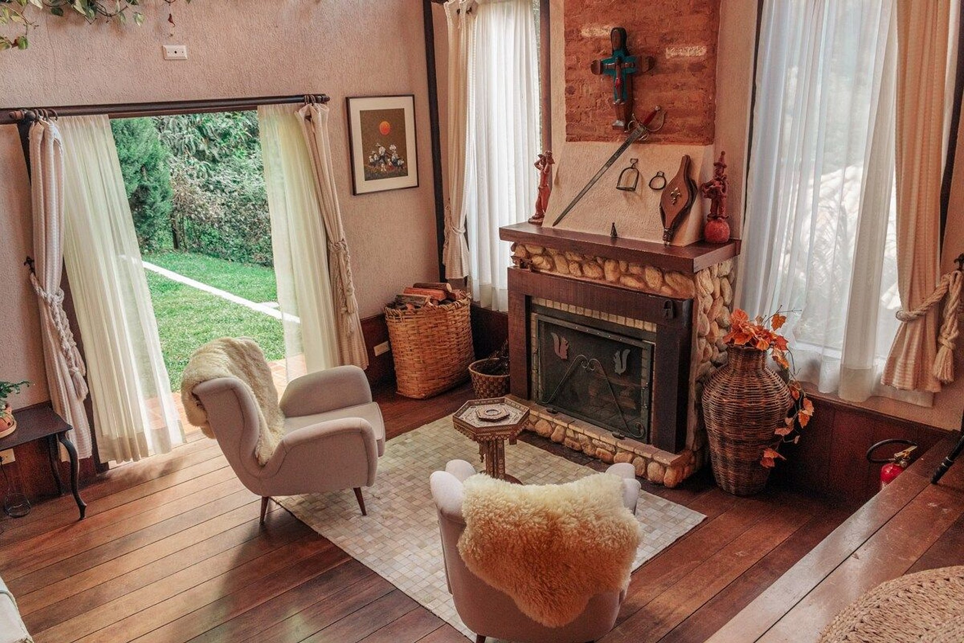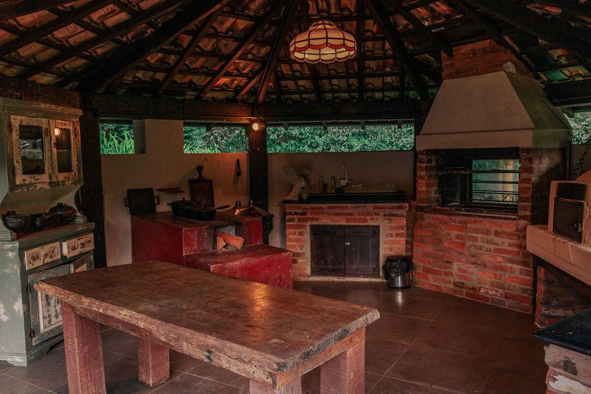 Com área social e íntima localizadas no piso superior, as três suítes da casa contam com lareiras instaladas para o maior conforto nos dias mais frios. Destaque para a iluminação, que é um dos pontos altos desta casa, complementando a iluminação natural que visita o ambiente. Além disso, o ambiente descontraído no piso inferior, com mesa de bilhar e jogos, é perfeito para reunir amigos e família . Este espaço tem a disponibilidade de acomodar uma cama extra com um delicioso e confortável colchão queen inflável. Ofurô com vista privilegiada. Um jardim de tirar o fôlego. O pomar é encantador e doce sem contar a nossa horta com algumas delícias para cada época .