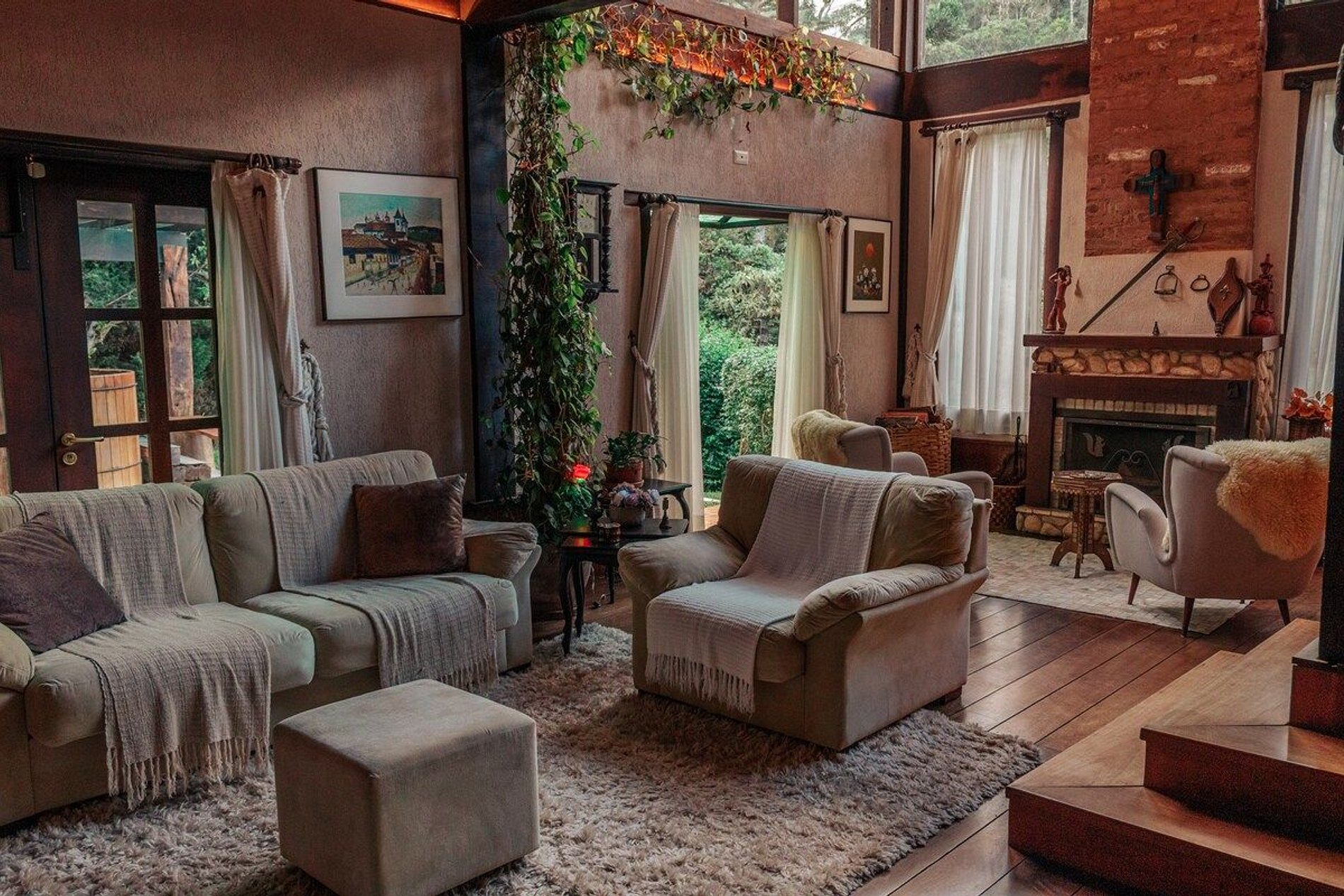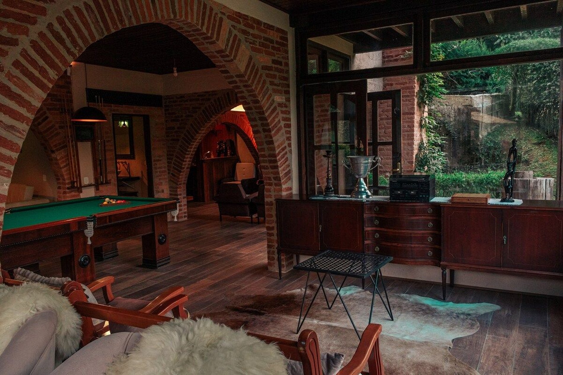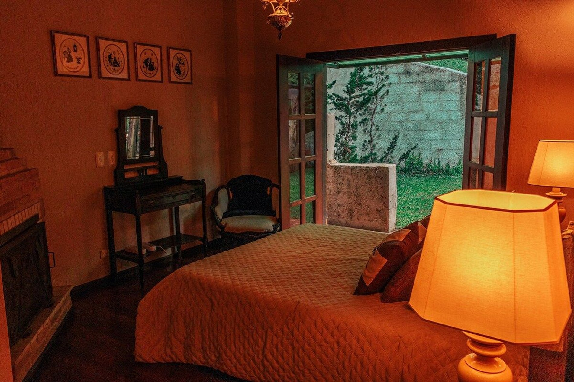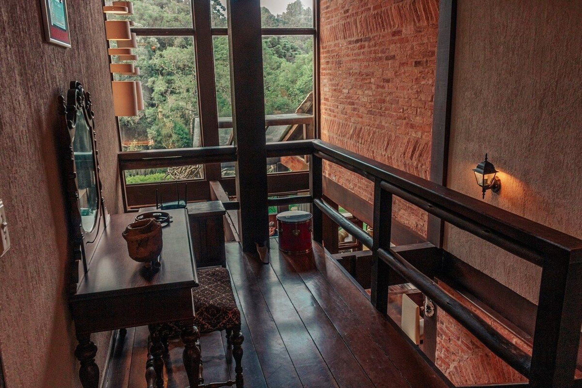 Com área social e íntima localizadas no piso superior, as três suítes da casa contam com lareiras instaladas para o maior conforto nos dias mais frios. Destaque para a iluminação, que é um dos pontos altos desta casa, complementando a iluminação natural que visita o ambiente. Além disso, o ambiente descontraído no piso inferior, com mesa de bilhar e jogos, é perfeito para reunir amigos e família . Este espaço tem a disponibilidade de acomodar uma cama extra com um delicioso e confortável colchão queen inflável. Ofurô com vista privilegiada. Um jardim de tirar o fôlego. O pomar é encantador e doce sem contar a nossa horta com algumas delícias para cada época .