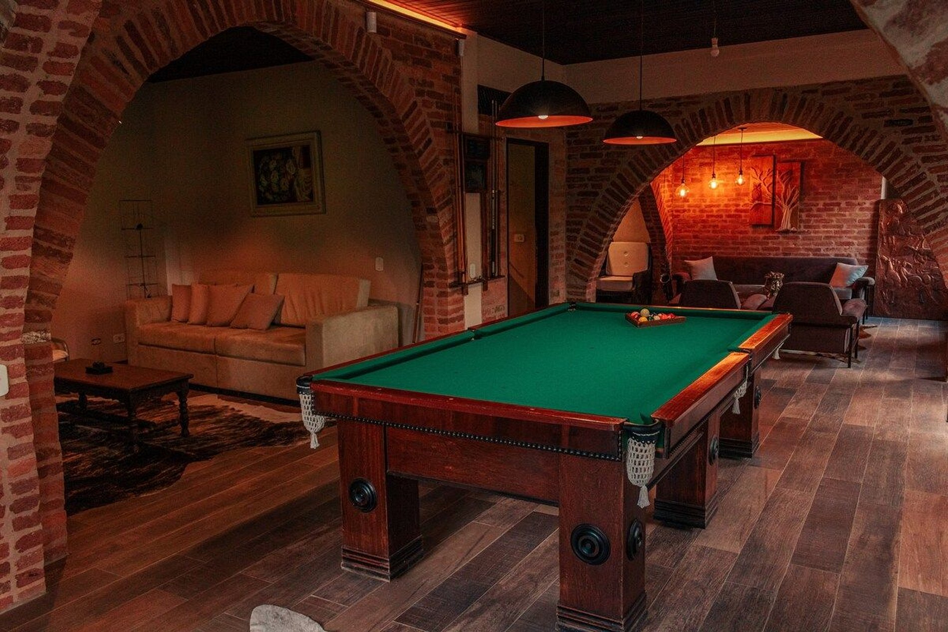 UMA DAS AREAS MAIS DESCONTRAIDAS DA CASA, FICA NO PISO INFERIOR, COM AMBIENTE PERFEITO PARA SE REUNIR TOMAR UM BOM VINHO, QUE INCLUSIVE ESTA PROPRIEDADE CONSTA COM ALGUNS ROTULOS SELECIONADOS PELO PROPRIETARIO PARA UMA REAL EXPERIENCIA, A VENDA MESA DE BILHAR E DE JOGOS REFORCAM A DESCONTRACAO E PARA QUEM QUISER SE ARRISCAR UM VILAO ESTARA DISPONIVEL